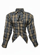 Cămașă cu guler și decolteu în V și mânecă lungă.
