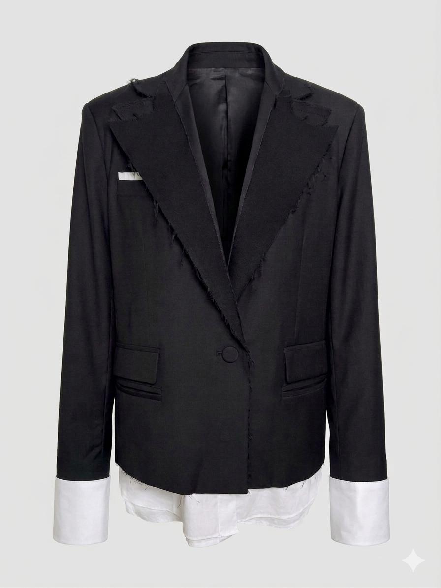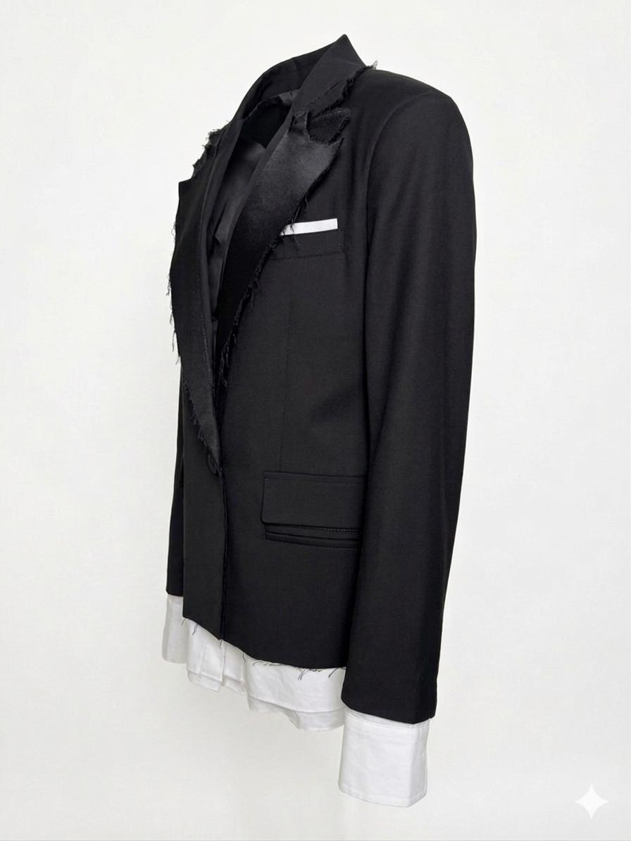Sacou din stofa, oversize cu rever aplicat și căptușeală din poplin tip cămașă.